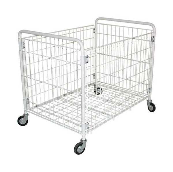 Cesta dobrável de plástico. Recipiente de plataforma de aço plastificado branco.