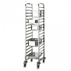 Este carro portabandejas ou com caixas desmontáveis vertical, é fabricado em aço inoxidável 18/10 de alta qualidade que oferece uma garantia máxima em relação à resistência, durabilidade e higiene, e é especialmente útil para uso profissional em serviços de cozinha, hotelaria, restauração, cantinas, buffets e grandes celebrações e eventos.