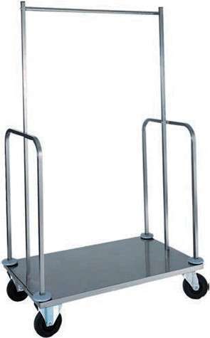 Estrutura de suporte em tubo de aço inoxidável. Base em aço inoxidável. 2 rodas fixas. 2 rodas giratórios Ø mm 140.