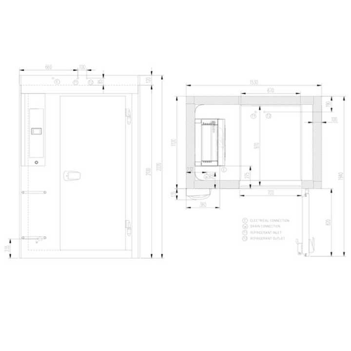 Dimensões (mm): 1530 x 1255 x 2220