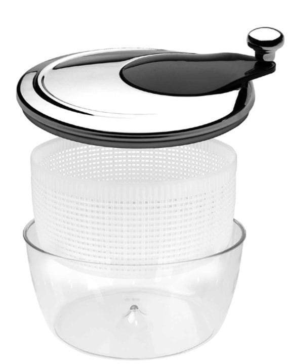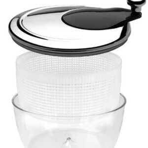Recipiente de acrílico livre de bisfenoles que também pode ser usado como tigela, enquanto que o carrinho pode ser usado como peneira para massas.