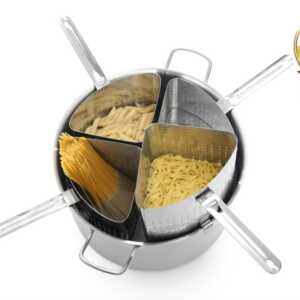 O fundo espesso em forma de sanduíche (aço inoxidável/alumínio/aço inoxidável) combina as propriedades de propagação de calor do alumínio, com a durabilidade e as propriedades magnéticas do aço inoxidável, tornando as panelas adequadas para utilização em fogões de indução.