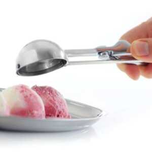 A colher de gelado é um acessório de cozinha útil feito de aço inoxidável para dispensar porções de gelado de forma conveniente. Recomenda-se a utilização da colher de gelado em cafés e restaurantes, mas também é adequada para cozinhas domésticas.