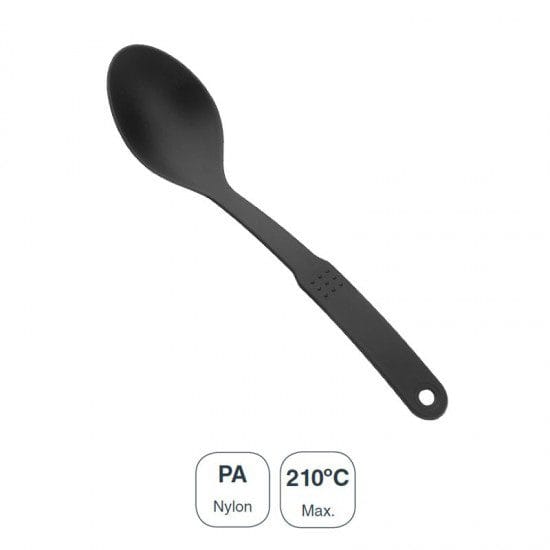 Colher lisa para cozinha da Série Black fabricada em nylon para temperaturas de cozido até 210ºC. Medidas: 30x7x5 cm