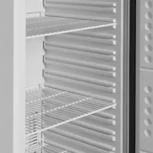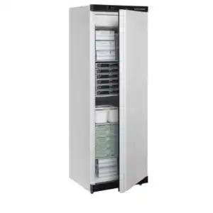 A gama de congeladores de armazenagem UF-V está disponível em vários tamanhos. Este congelador possui um eficiente sistema de arrefecimento assistido por ventoinha que assegura uma temperatura uniforme em todo o armário. A temperatura é definida no ecrã do termóstato digital fácil de utilizar. Pode personalizar o congelador de acordo com as suas necessidades com prateleiras ajustáveis. A descongelação ocorre automaticamente.