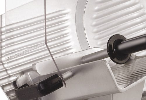 A carruagem é montada em arbustos autolubrificantes que permitem um deslizamento fácil, tornando possível cortar carnes frias pesadas, assados, peixes, etc. com facilidade.