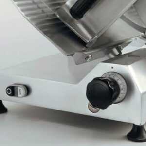 A carruagem é montada em arbustos autolubrificantes que permitem um deslizamento fácil, tornando possível cortar carnes frias pesadas, assados, peixes, etc. com facilidade.