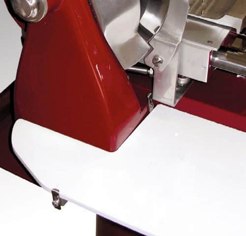 Superfície de plástico alimentar para a recolha do produto cortado.
