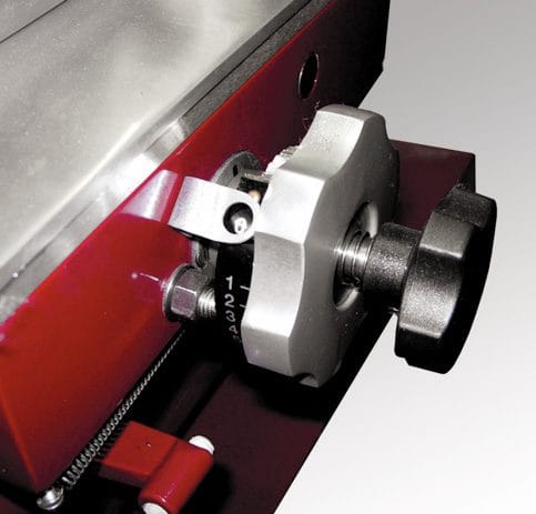 Regulador de espessura de corte muito sensível, que permite um ajuste decimal de 0 a 2 mm.