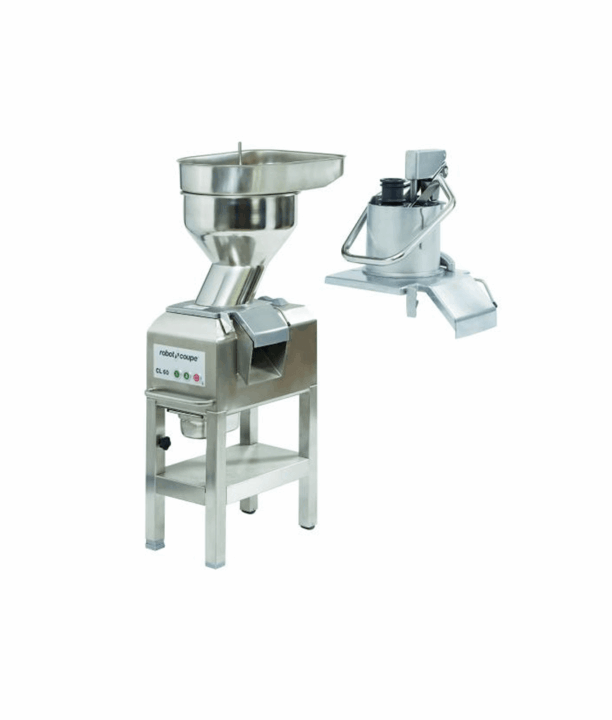 Cortadora de legumes com 2 bocas, concebida para cortar grande volume de legumes num instante.