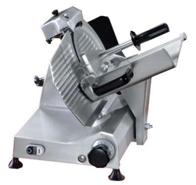 A cortadora é feita de liga de alumínio anodizado, pode ser limpo rapidamente e garante hygrene absoluto. A espessura das fatias é estabelecida por um regulador muito sensível em uma base decimal e pode variar de 0 a 16 mm. Simples de montar, o afiador ajuda o usuário a manter uma borda perfeita. O deslizamento da bandeja montada em rolamentos tem um movimento excepcionalmente fluido que permite cortar salsichas volumosas, assados, queijos, peixe, carnes compactas etc.