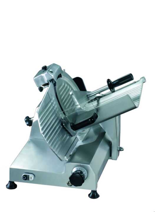 A cortadora é feita de liga de alumínio anodizado, pode ser limpo rapidamente e garante hygrene absoluto. A espessura das fatias é estabelecida por um regulador muito sensível em uma base decimal e pode variar de 0 a 16 mm. Simples de montar, o afiador ajuda o usuário a manter uma borda perfeita. O deslizamento da bandeja montada em rolamentos tem um movimento excepcionalmente fluido que permite cortar salsichas volumosas, assados, queijos, peixe, carnes compactas etc.
