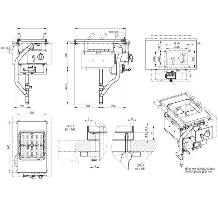 Modelo de 350 mm de largura em aço inoxidável. Cozedor de Pasta para Massas, ...