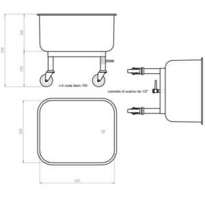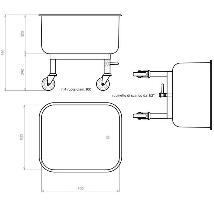 Cuba recipiente com rodas para lavagem de vegetais, enxágue de talheres e outras utilidades como o transporte de diferentes produtos líquidos, farinha, açúcar, etc.