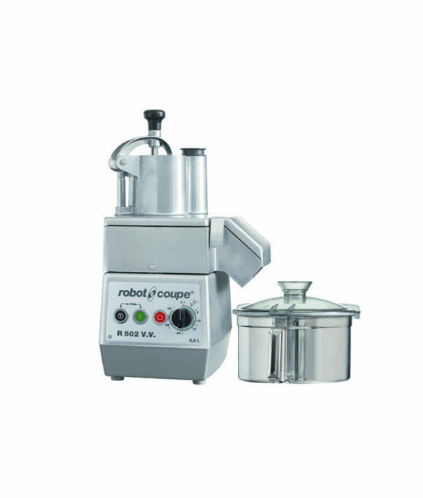 Cutter e cortadora de legumes com tampa fácil de posicionar sobre a cuba para utilização simples e rápida. Prevista para permitir acrescentar ingredientes líquidos ou sólidos durante a preparação.