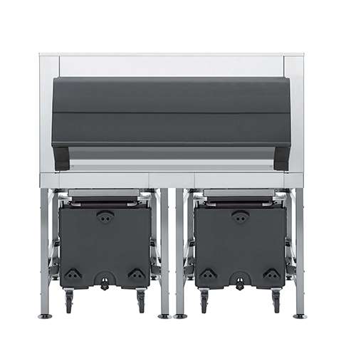 Depósitos de gelo em aço inoxidável com isolamento interno em poliuretano de alta densidade que mantém o correto isolamento e a durabilidade do gelo.