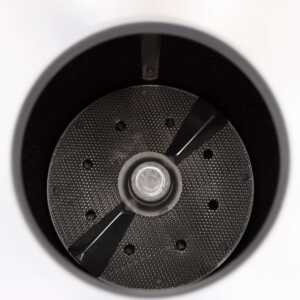 – Material abrasivo em todo o depósito, incluindo o prato, fácil de retirar para substituição.