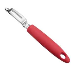 Descascador de tomate “P” dente de 19,5 cm de comprimento, fabricado em aço inoxidável 18/10 de alta qualidade e resistência à corrosão com cabo vermelho de ABS.