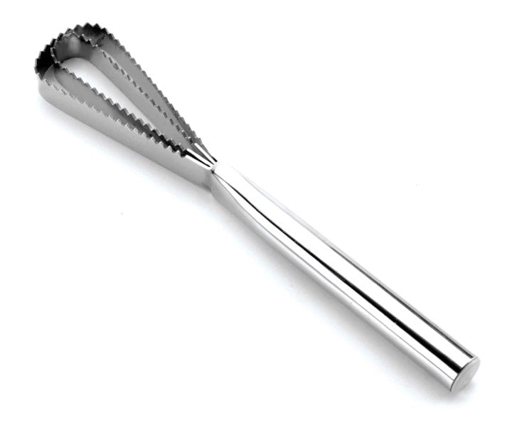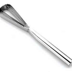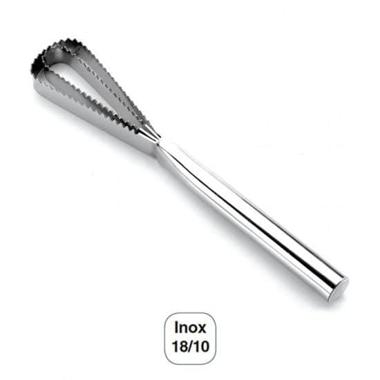 Desescamador para peixe de 27,5 cm de comprimento, fabricado em aço inoxidável 18/10 de alta qualidade e excelente resistência à corrosão.