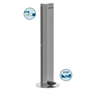 DGP: É um dispensador acionado por pedal, de funcionamento simples, muito prático e que se adapta a uma grande variedade de tipos de frascos, já que é regulável em altura. Inclui uma bandeja antigotejamento e um frasco dispensador de gel de 1 litro.