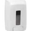 Distribuidor automático para sabonete ou gel hidroalcohólico fabricado em ABS cor branco, com depósito de polietileno de 850 ml de capacidade.
