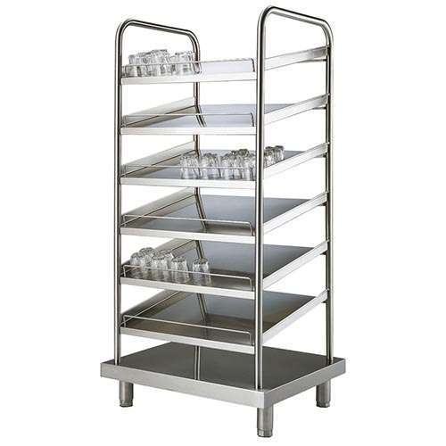 Distribuidores de copos fabricados em aço inoxidável AISI 304 18/10 com prateleiras inclinadas para a colocação de copos e taças.
