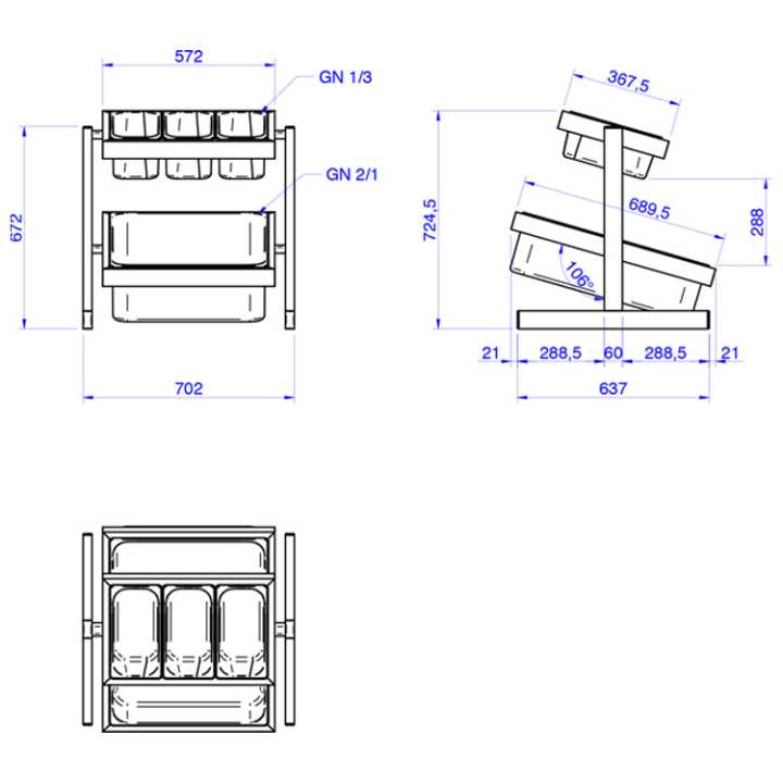 Dimensões (mm): 702 x 680 x 725
