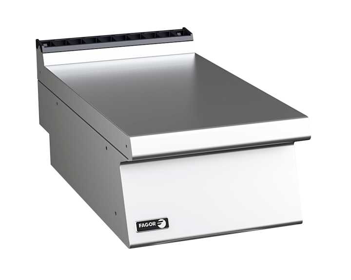 – Equipamento de meio módulo e um módulo. – Bancada fabricada em aço inoxidável AISI- 304 com 1,5 mm de espessura. – Juntas de corte a laser e soldaduras automáticas. Parafusos ocultos. – Máquinas preparadas para ligar uma torneira de enchimento ou coluna de água na parte posterior. – Friso posterior de chaminé de ferro fundido esmaltado de alta temperatura