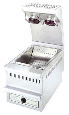 Os elementos de aquecimento são controlados pelo interruptor ON-OFF central, que tambem oferece uma capacidade de potência total ou baixa potência. Cuba com fundo falso perfurado.”