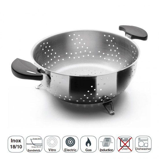 Escorredor modelo Nova-Ladycor fabricada em aço inoxidável 18/10 de alta qualidade que oferece excelente resistência à corrosão e aos ácidos alimentares e sais.