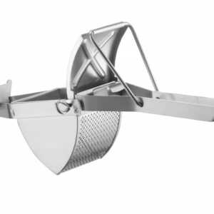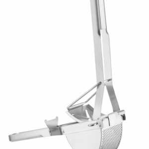 O esmagador de batatas é um acessório universal de cozinha feito de aço inoxidável.