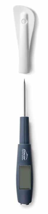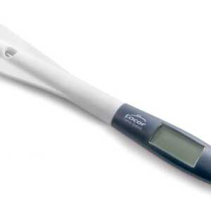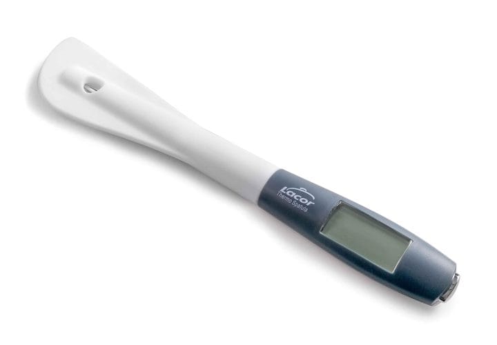 Espátula de silicone com termômetro sonda e display digital para medir temperaturas de líquidos ou alimentos com uma faixa entre -50 ° C até 300 ° C. Comprimento: 29 cm