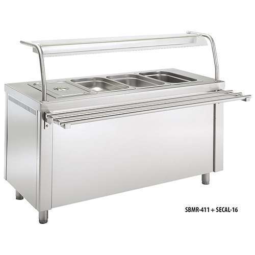 Para melhorar a apresentação dos alimentos e também para mantê-los na temperatura adequada, estão disponíveis topos com luz e calor, projetados para serem instalados em elementos quentes.