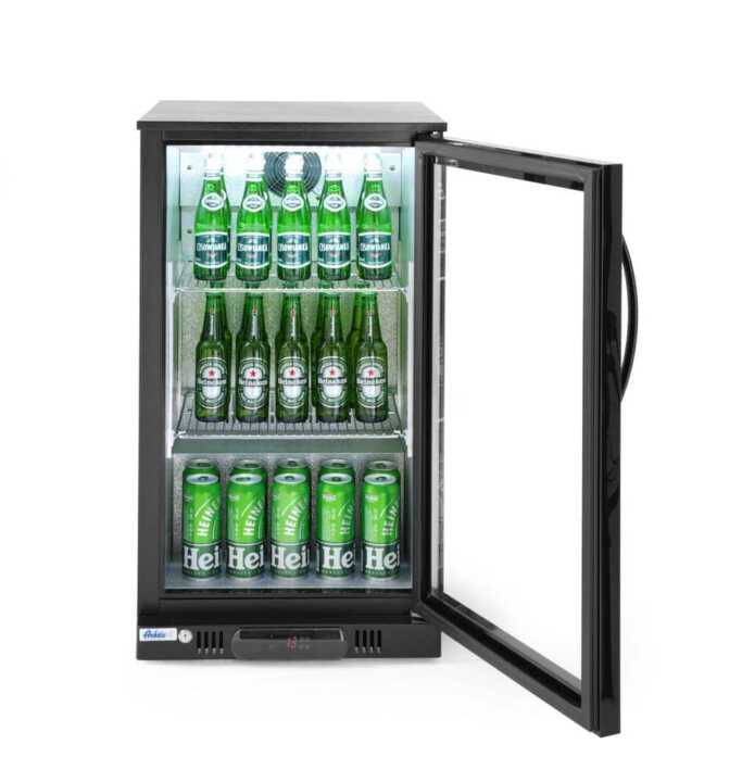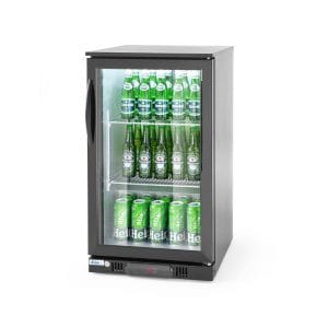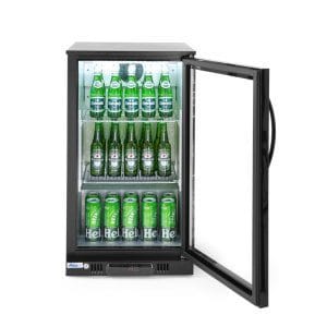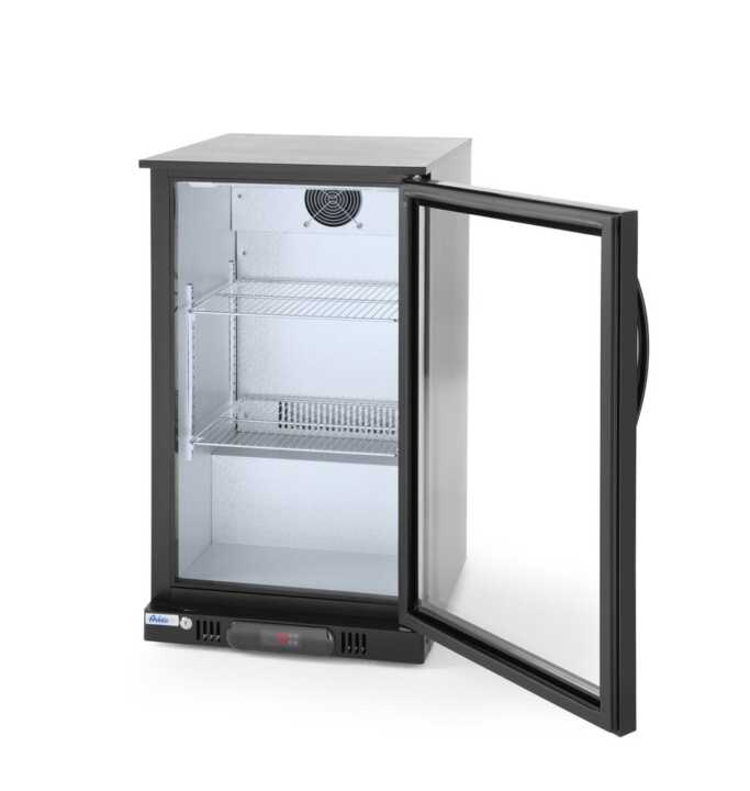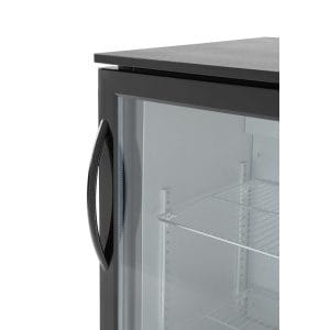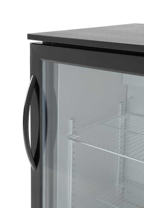 Estrutura lacada, câmara em alumínio embutida, porta(s) de plástico e vidro temperado, passíveis de serem trancadas.