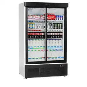 A gama FS de expositores refrigerados de 2 e 3 portas oferece uma excelente qualidade de construção a um preço competitivo. Pode escolher entre armários com exterior branco ou preto, portas de vidro com moldura de alumínio preto, portas com dobradiças ou de correr. As prateleiras são ajustáveis, tornando a gama FS numa solução flexível. Obtém uma excelente apresentação do produto, combinada com um potente sistema de arrefecimento assistido por ventoinha, controlado por um termóstato eletrónico. Muitos modelos estão também disponíveis com cobertura (gama FSC).
