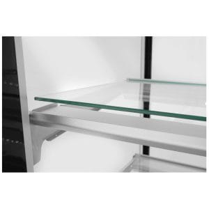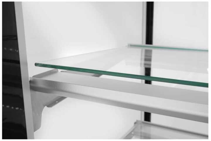 Com iluminação LED brilhante na parte superior e por baixo de cada prateleira.