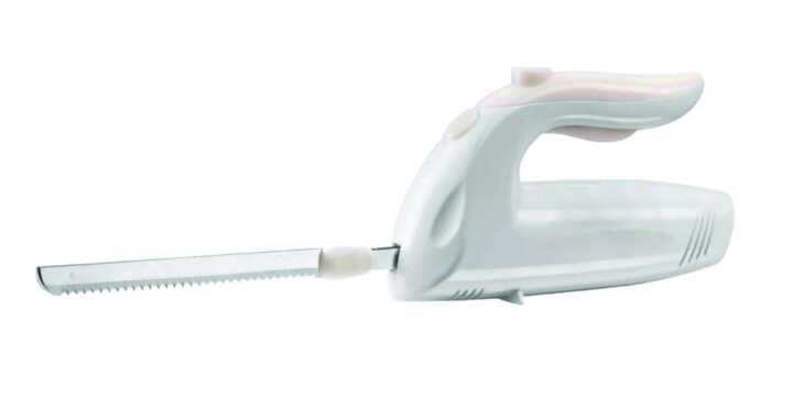 Faca elétrica com corpo de abs e lâmina de aço inoxidável.