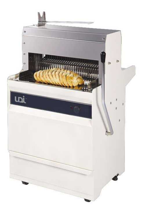 Fatiadora de ajuste fácil e preciso de acordo com o tipo de espessura do pão. Zona de trabalho feito em aço inox. corpo reforçado e tampa em aço inox. Capacidade: 500/h Botão: ON/OFF Botão de paragem de emergência