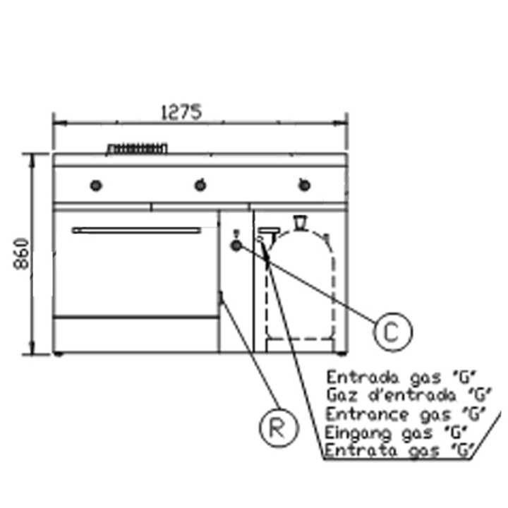 Modelos de 1270 mm de largura e 550 de profundidade Fogão a gás 3 bocas com forno ...
