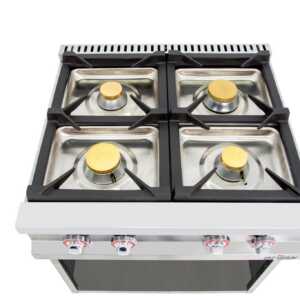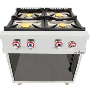 Queimadores superiores em ferro fundido e latão com alto poder calorífico com termopar e chama piloto