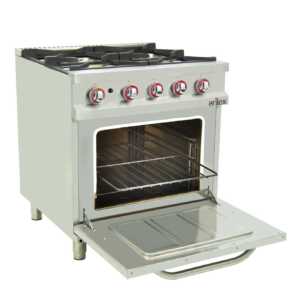 Estrutura, painéis, prateleira e chaminé em aço inoxidável para permitir maior durabilidade, robustez, fiabilidade e facilidade de limpeza