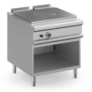 Nas versões com acionamento elétrico, a placa de cozimento é única, mas possui 4 zonas de cozimento com controle independente
