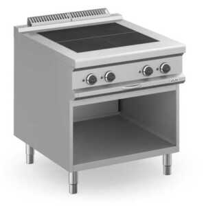 As placas de ferro fundido de rápido aquecimento e com dispositivo de segurança contra superaquecimento são embutidas na bancada “hermeticamente”
