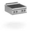 Nas versões com acionamento elétrico, a placa de cozimento, em aço macio com 15 mm de espessura, é única, mas possui 4 zonas de cozimento com controle independente