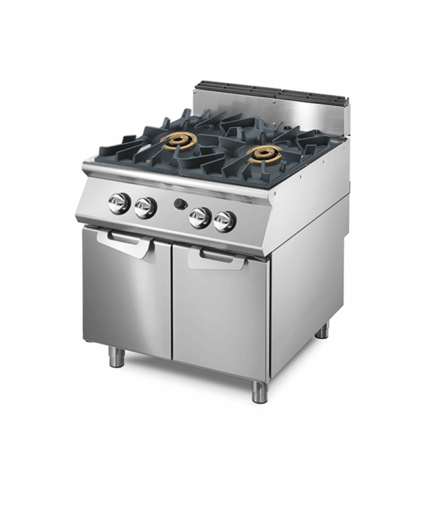 Fogão a gás com 2 queimadores de alto rendimento e base neutra com portas.