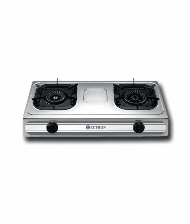 Fogão trempe a gás de bancada com 2 queimadores Ø120mm, estrutura em aço inoxidável, válvula de gás de segurança com termopar.