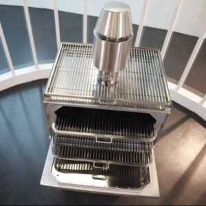 O suporte do forno é robusto e feito inteiramente de aço inoxidável.