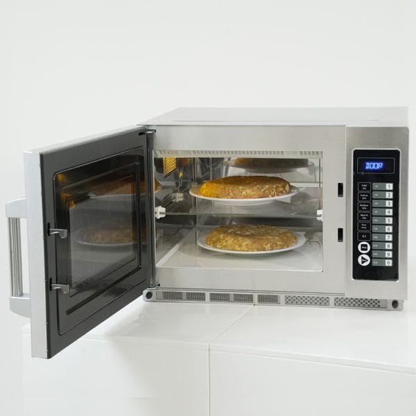 Aquecem e cozinham pequenas porções de alimentos rapidamente e são mais potentes e robustos do que os fornos microondas domésticos e concebidos segundo os regulamentos de equipamento profissional.
