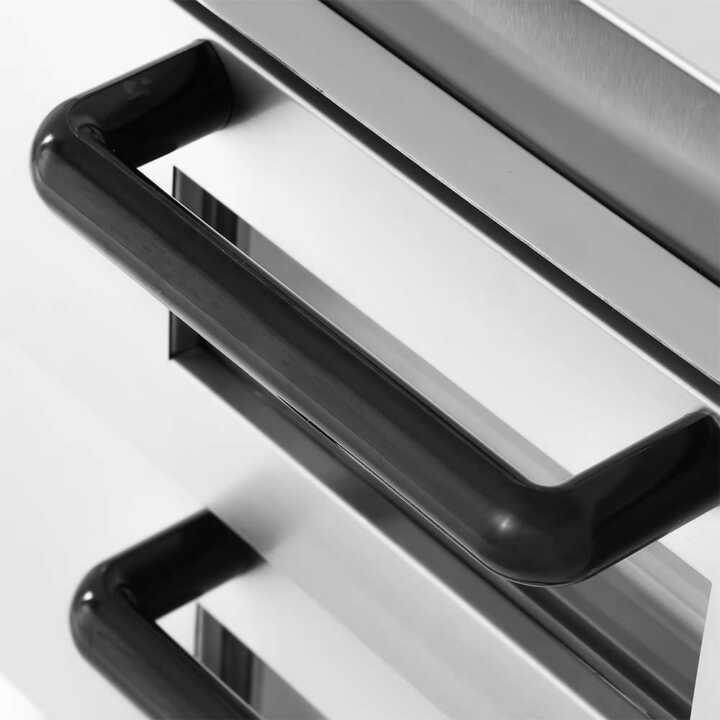 – Forno elétrico com uma estrutura em aço inoxidável que proporciona uma grande durabilidade. Muito fácil de utilizar, manter e limpar.