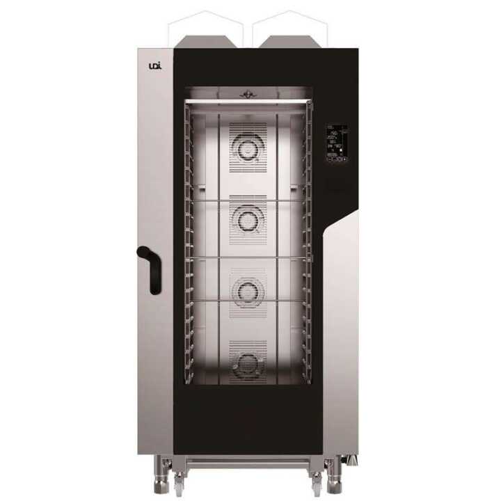 Forno a gás combinado 20 tabuleiros GN 1/1 com painel digital Touch. Qualidade num forno eficiente. Pode configurar até 100 receitas da maneira mais fácil e imediata possível e configurar até 10 etapas de cozedura.